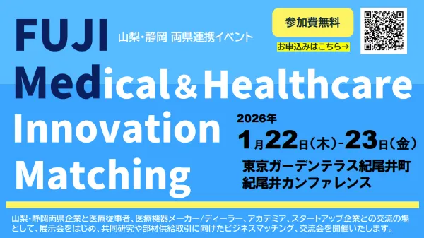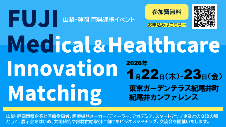 この度、2026年1月22日(木)・23日(金)に東京ガーデンテラス紀尾井町にて開催されます展示商談会「FUJI Medical & Healthcare Innovation Matching」へ出...